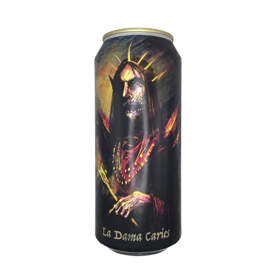 Brujos La Dama Caries es una DDH Quadruple IPA con una explosión de lúpulos Citra y Eclipse seleccionados y con un doble macerado.