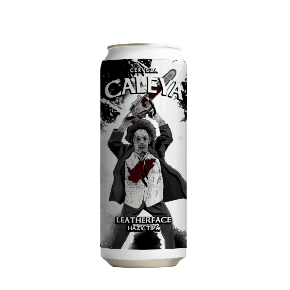 Caleya Leatherface es una Hazy Triple IPA cremosa y densa, compleja en nariz, con notas cítricas, mango y maracuya.