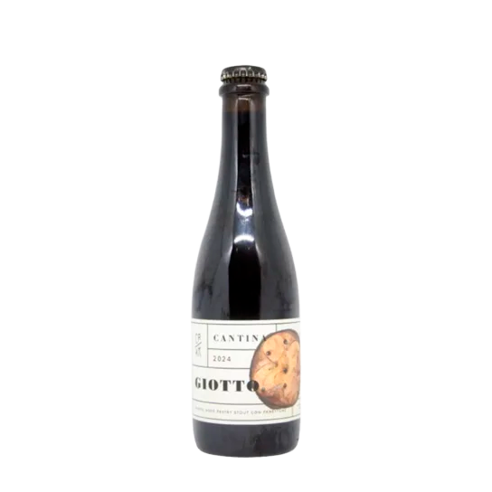 Giotto es un Pastry Stout sin espuma, madurada durante 24 meses en barricas de chardonnay y con una gran cantidad de panettone. Compleja, untuosa y, obviamente, con un marcado sabor a panettone.