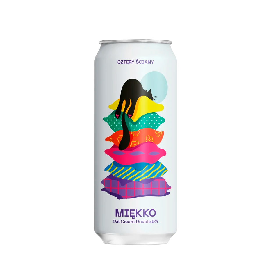 Cztery Ściany Miekko es una Oat Cream Doble IPA con lúpulos Talus, Riwaka y Citra.