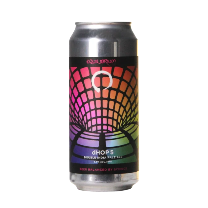 Equilibrium Dhop5 es una Doble NEIPA que ha ampliado la receta base de Fractal —maltas, tratamiento del agua y fermentación— y han sobredimensionado la carga de lúpulos Citra y Galaxy.