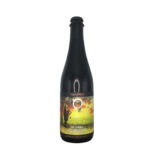 Equilibrium Sir Isaac Fig Newton es una Imperial Pastry Stout con masa de brownie de chocolate mezclada con cerezas cubiertas de chocolate, mazapán y turrón de almendra, todo ello unido por un toque equilibrado de mermelada de frutos rojos.