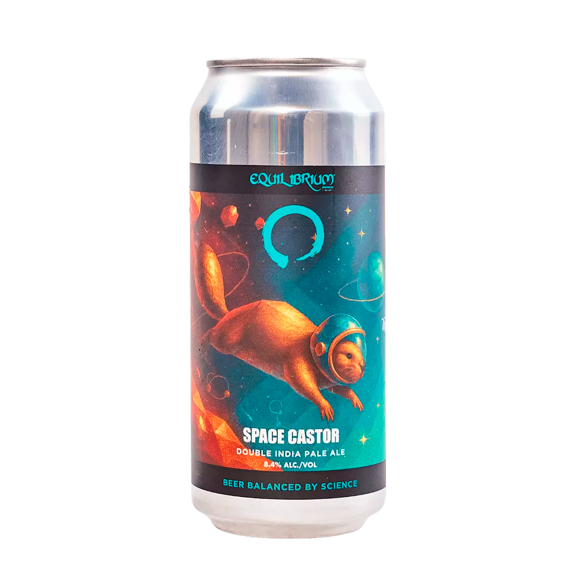 Space Castor es una Doble NEIPA colaboración entre Equilibrium y Tripping Animals con sabores a cóctel de cítricos, Sauvignon Blanc, uva, piña, ensalada de frutas tropicales, gominolas de lima y naranja con un toque ácido, y un fondo herbáceo que equilibra el conjunto.
