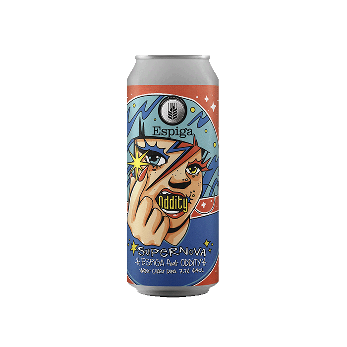 6,45 € IVA incl.Supernova es una West Coast DIPA diseñada para los amantes del amargor nítido y los perfiles aromáticos intensos que explotan como una auténtica estrella