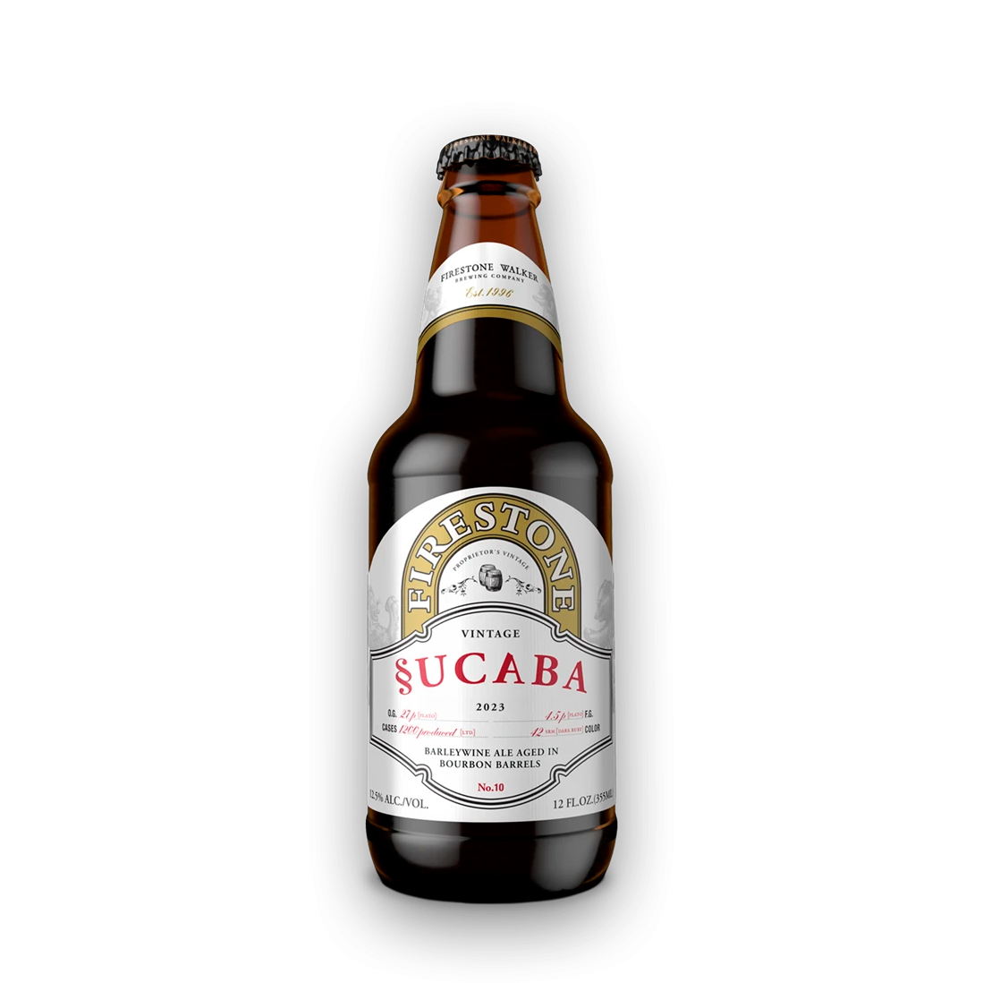 Firestone Walker Sucaba 2023 es una English Barleywine cuyo nombre original se perdió tras un insignificante desafío legal; esta cerveza ha reposado durante 12 meses en barricas de bourbon Blanton’s y Weller.