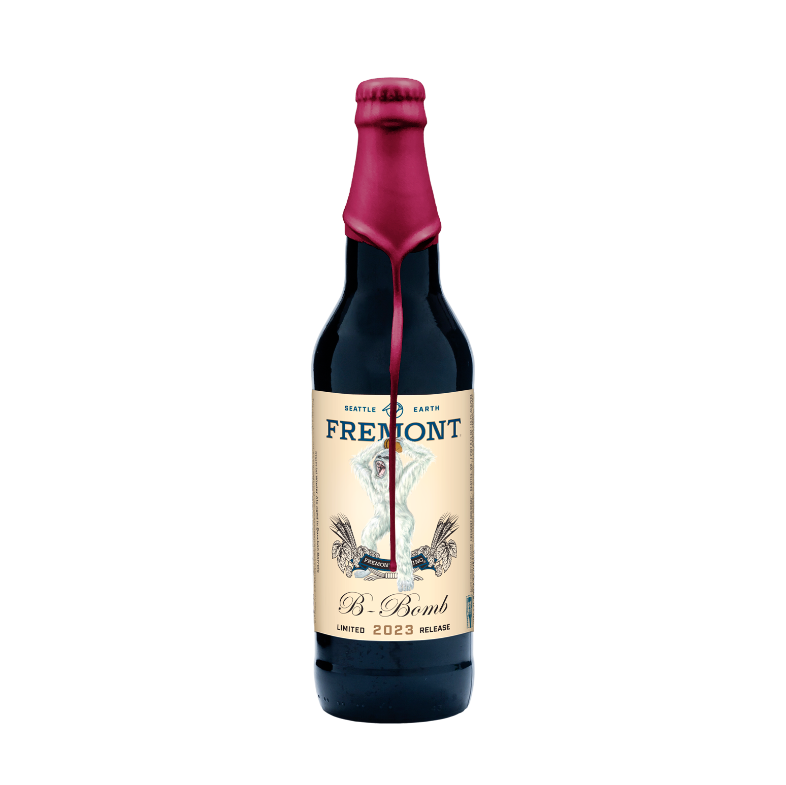 Fremont B-Bomb 2023 es una mezcla de Winter Ale envejecida en barrica durante 9, 12 y 24 meses que después ha sido envejecida en barricas de bourbon de roble americano de entre 8 y 12 años