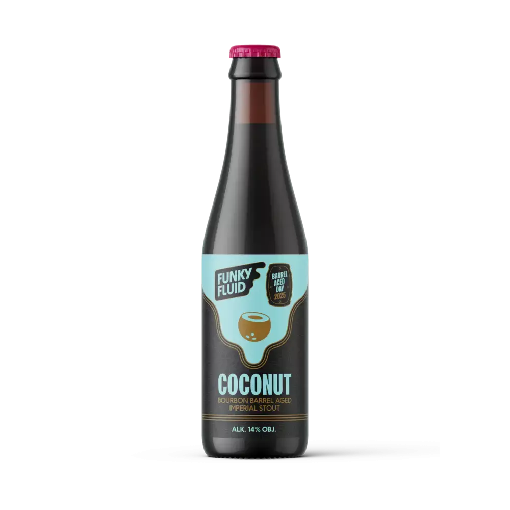 25,99 € IVA incl.Funky Fluid Barrel Aged Day 2025: Coconut es una mezcla de Imperial Stouts envejecidas en barrica de Woodford Reserve Double Oaked y Jim Beam, con la adición de coco rallado de Sri Lanka. Envejecida durante 36–42 meses.