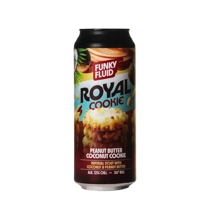 12,99 € IVA incl.Funky Fluid Royal Cookie: Peanut Butter Coconut Cookie es una Imperial Pastry Stout en la que apuestan fuerte por copos de coco tostados a mano y mantequilla de cacahuete en polvo desgrasada.