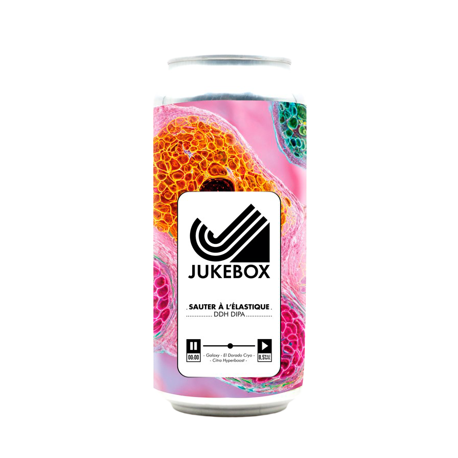 Jukebox Sauter à L’élastique es una DDH Doble IPA intensa que no hace las cosas a medias: el trío Galaxy, Citra y El Dorado sube al escenario para una jam session explosiva.