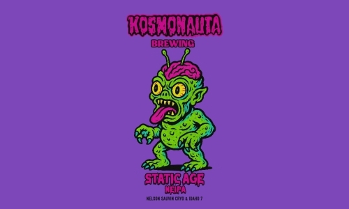 Kosmonauta Static Age es una NEIPA elegante y moderna de color dorado pálido y aspecto turbio, con espuma blanca y cremosa, donde el lúpulo se expresa con equilibrio y carácter.