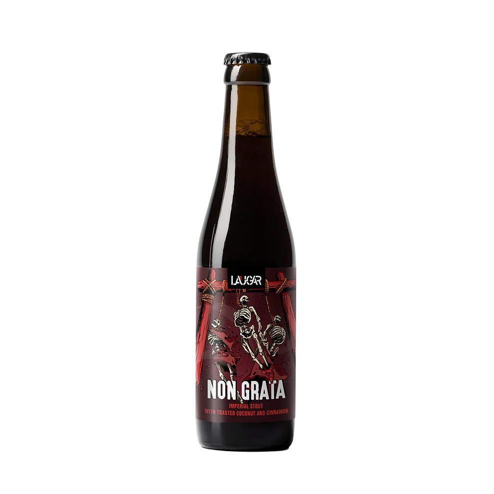 Laugar Non Grata es una Imperial Stout a la que han añadido coco tostado y canela para un perfil decididamente goloso. Visualmente es oscura y apetecible, con aromas que te transportarán a postres exóticos.
