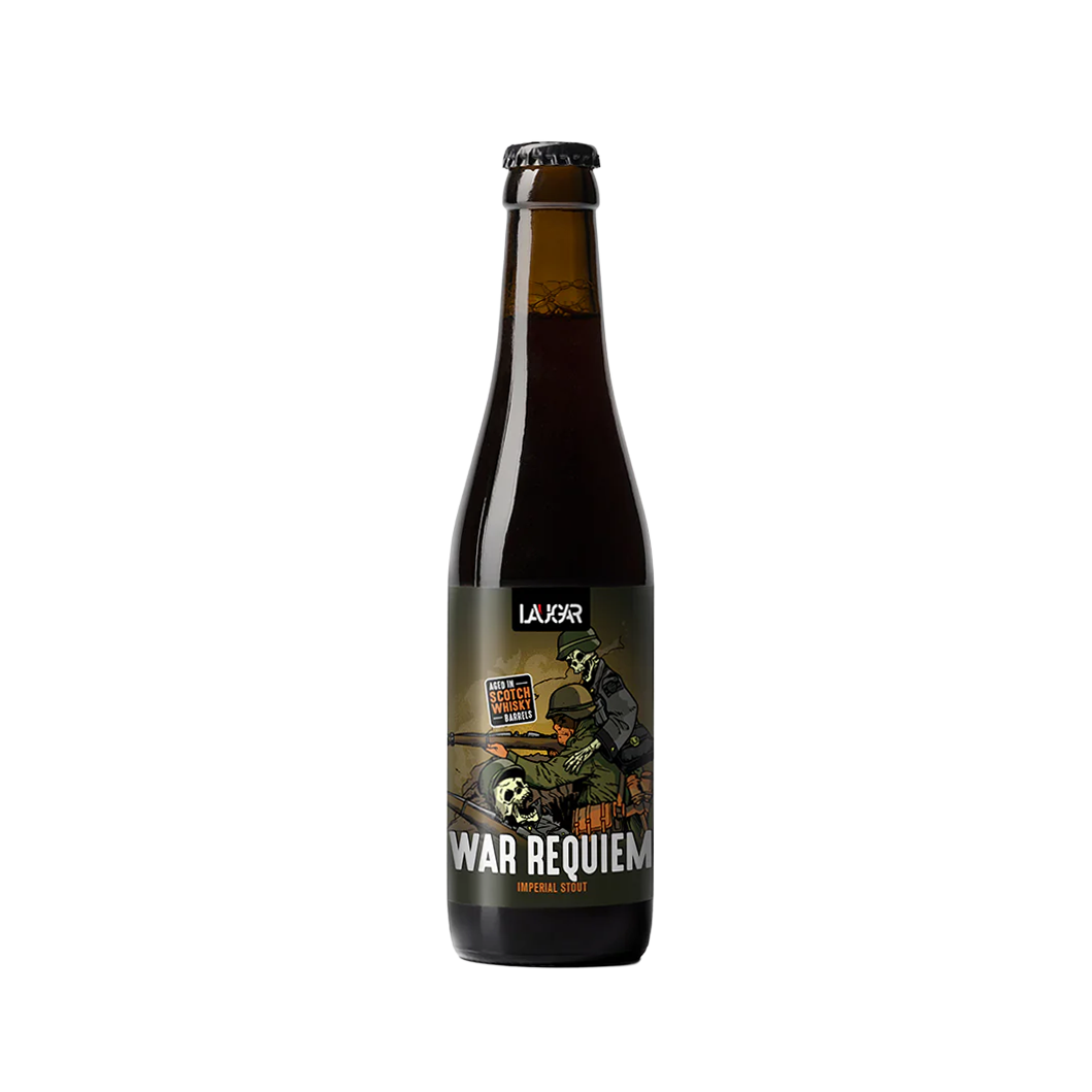 Laugar War Requiem es una Imperial Stout envejecida en barricas de Whisky escocés.
