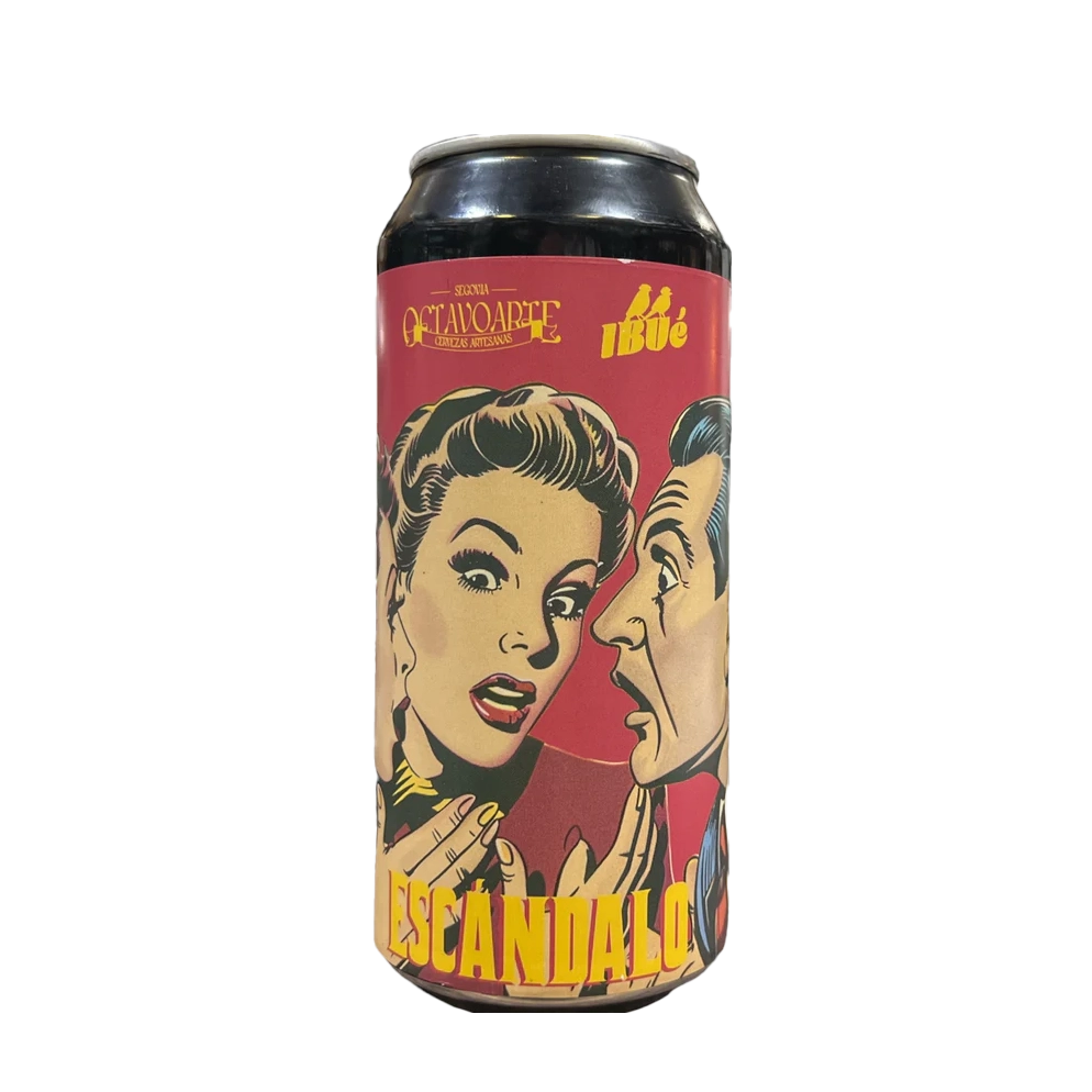 Escándalo es una Hazy IPA colaboración entre Octavo Arte e Ibué. Cargadísima de lúpulos Amarillo, Citra, Mosaic y Simcoe, súper redonda. Con cuerpo medio-alto y carbonatación moderada tiene un punto amargo por debajo del dulzor y aromas y sabores tropicales.