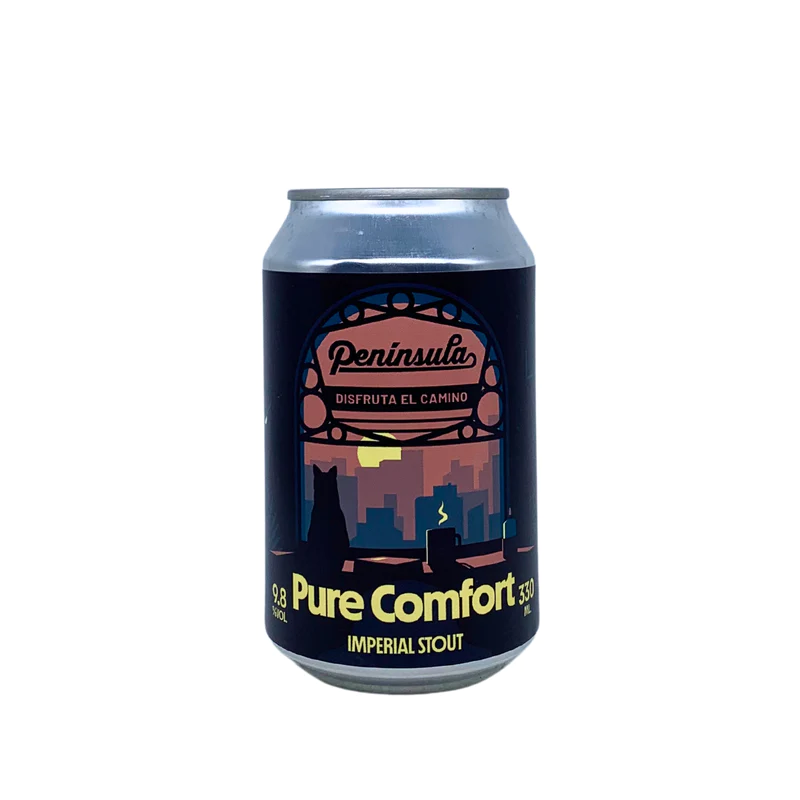 Península Pure Comfort es una Imperial Stout elaborada con 7 maltas (pale ale, imperial, carafa 2, carafa 3, chocolate, roasted barley y special w), lo que le da una profundidad de sabor impresionante, dominada por las notas de chocolate y frutos secos. Además tiene una gran sedosidad en boca gracias a la lactosa.