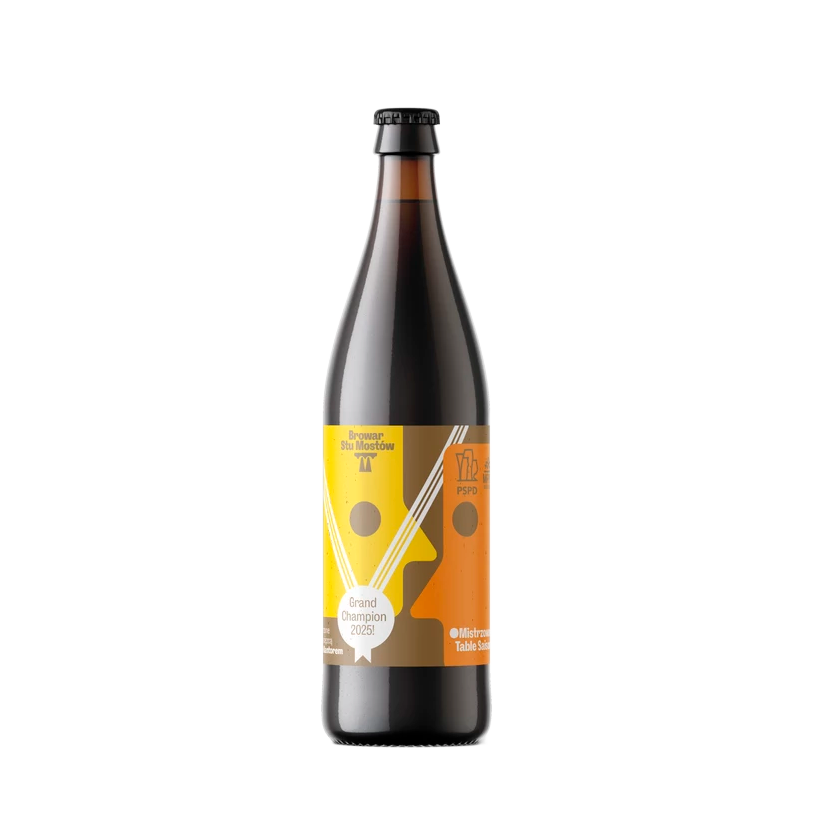 Stu Mostow Grand Champion 2025 es una Saison ajustada con lúpulos americanos, con un aroma a melocotón, súper seca y con carácter a cereal.